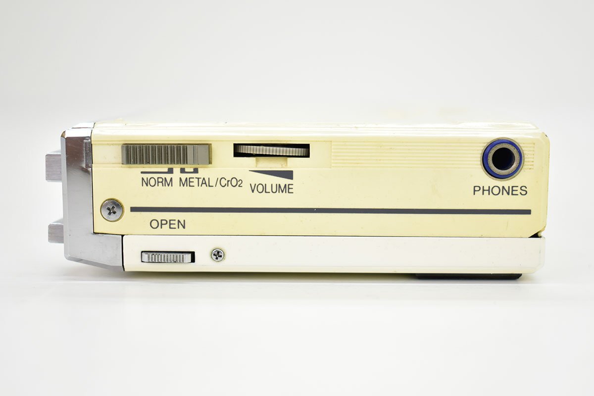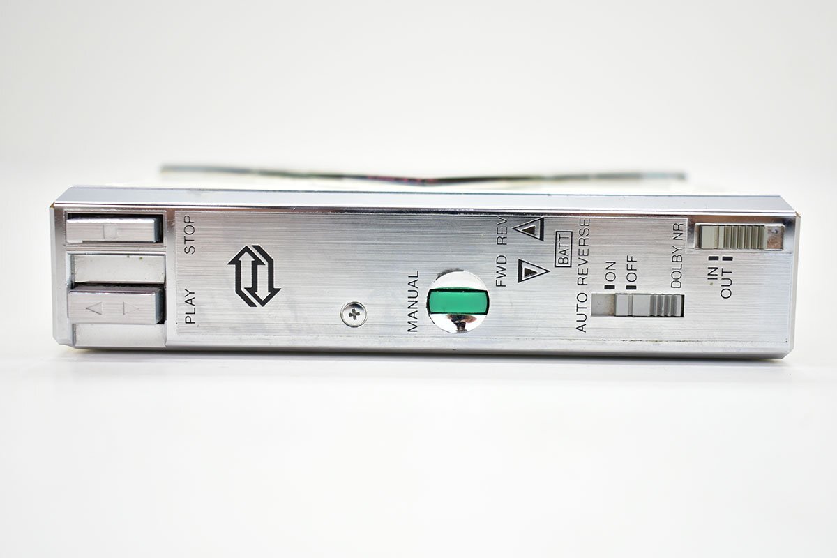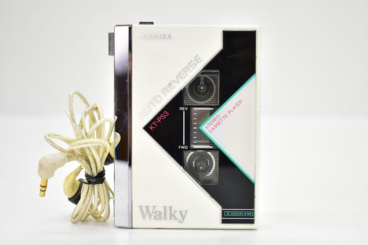 简洁的自动倒带式随身听,设计独特,引人注目。附赠双导管结构的立体声迷你耳机。