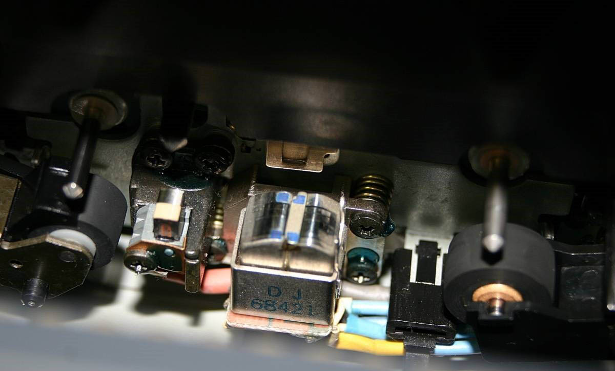 采用以磁带头为中心,在收带侧和供带侧都采用绞盘和压带轮的闭环双绞盘系统。这改善了抖晃特性,并降低了磁带振动引起的调制噪声。